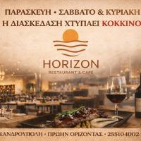 Το Horizon Restaurant στη Νέα Χηλή Αλεξανδρούπολης (Πρώην Ορίζοντας) συνεχίζει να ξεχωρίζει ως ένας χώρος όπου η καλή γεύση συναντά τη σωστή διασκέδαση. Με σταθερή ποιότητα, θαλασσινές προτάσεις που τιμούν την πρώτη ύλη και ένα περιβάλλον που αποπνέει άνεση και φιλικότητα...