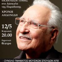 Εκδήλωση – συναυλία αφιερωμένη στο Δάσκαλο της Παράδοσης Χρόνη Αηδονίδη